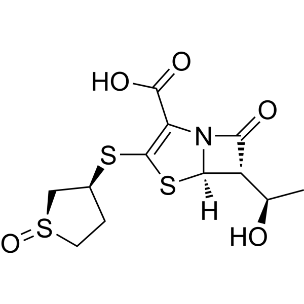 | 中文名称 | (5R,6S)-6-((R)-1-羟乙基)-3-(((1R,3S)-1-氧化氢化噻吩-3-基)硫代)-7-氧代-4-噻-1-氮杂双环[3.2.0]庚-2-烯-2-羧酸; 硫培南 |