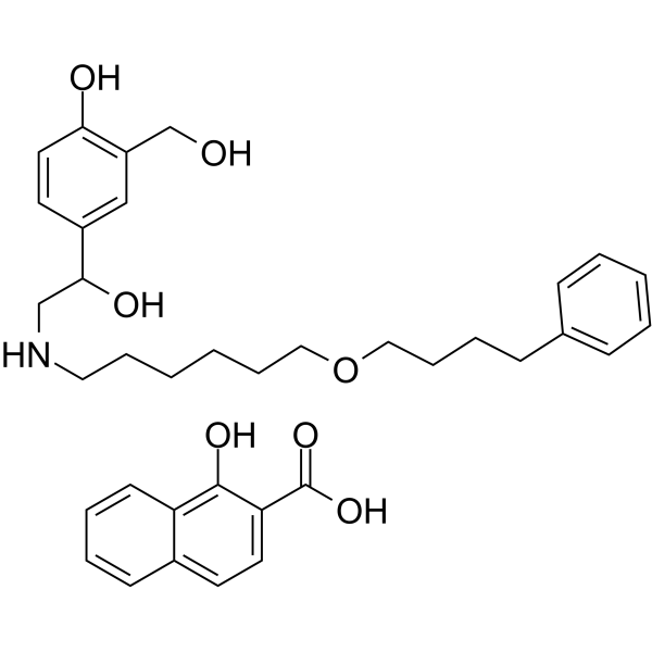 Salmeterol Xinafoate(GR 33343X xinafoate,Salmetedur) is a long-acting β2-adrenergic receptor agonist with anti-inflammatory effects, used in the treatment of asthma symptoms and chronic obstructive pulmonary disease (COPD) symptoms.