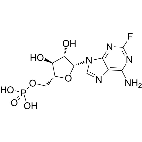 Fludarabine (phosphate) is an analogue of adenosine and deoxyadenosine, which is able to compete with dATP for incorporation into DNA and inhibit DNA synthesis.
